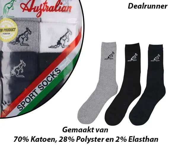 Lekker in uw schoenen staan, begint met goede sokken! Deze sokken van Australian zijn heerlijk om te dragen dankzij de goede pasvorm en de samenstelling van katoen, polyester en elasthan. De sokken zijn hierdoor vochtabsorberend en behouden hun vorm. Ideaal dus om in te sporten, of gewoon te dragen naar uw werk. Met 10 paar breid je in één keer je sokkencollectie flink uit. De hoge kwaliteit Australian sokken zijn de perfecte allrounder voor iedere situatie