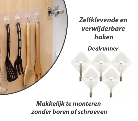 Zelfklevende haken: een set van 10 schadevrije haken, tot 800 gram per haak aan muur en plafond, geen spijker nodig. Super waterdicht en oliebestendig, hoge en lage temperatuurbestendigheid. Eenvoudig te gebruiken: gemakkelijk te plakken en beschadigt je muren niet. Je hoeft niet te spijkeren en te boren. Gemakkelijk te verwijderen zonder beschadiging van het oppervlak, kan na het reinigen herhaaldelijk worden gebruikt en gedroogd. Op grote schaal gebruikt op een groot aantal oppervlakken, zoals hout, tegels, keramiek, metaal, kunststof en nog veel meer (let erop dat er grenzen zijn bij geschilderde wanden), bijzonder geschikt voor het ophangen van douche- of badkameraccessoires in badkamer- of keukengerei en gereedschappen op een tegelvloer. Solide roestvrij stalen en PC-constructie, garandeert kwaliteit en duurzaamheid. Klein en licht, multifunctioneel. Het kan steeds opnieuw worden gebruikt als het met een föhn wordt gedroogd, veel beter dan de zuignaphaken.