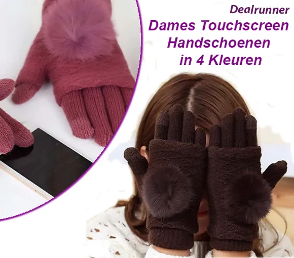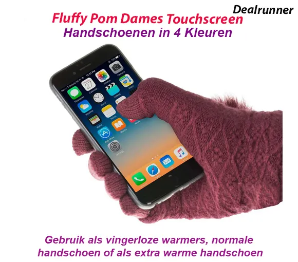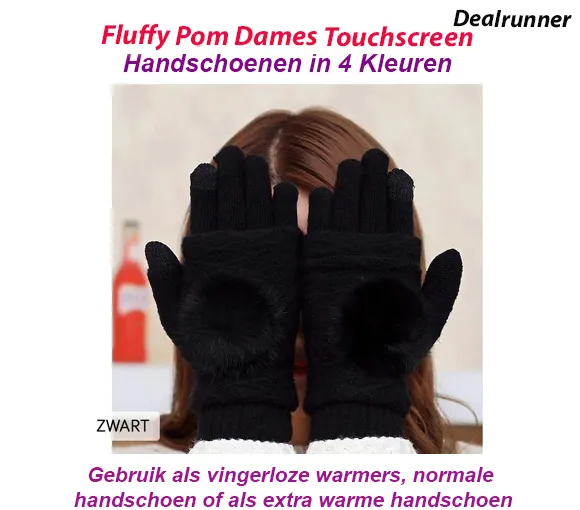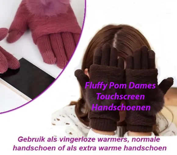 2-Paar Fluffy Pom Dames Touchscreen Handschoenen in 4 Kleuren