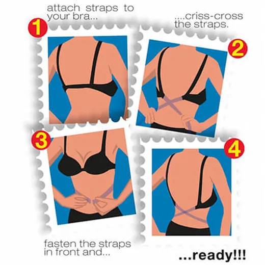 Heb jij ook zo’n mooi jurkje met open rug of een shirtje met een diep decolleté aan de achterkant, maar vind je het vervelend als je beha zichtbaar is? Dan zijn deze Low Back beha bandjes dé oplossing! De beha bandjes voor het dragen van kleding met een blote rug zijn heel makkelijk aan iedere bestaande beha te bevestigen. De bandjes worden gewoon aan de uiteinden van uw eigen beha vastgemaakt. De beide uiteinden van de beha bandjes worden naar voren gehaald en gesloten door een handig sluitsysteem.