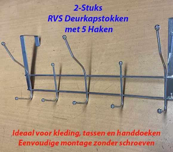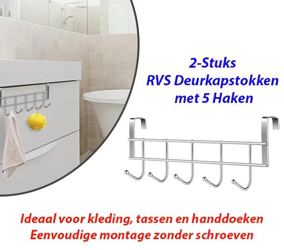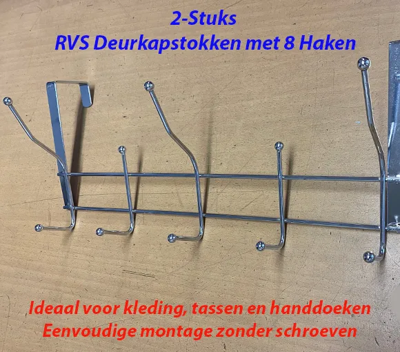 2-Stuks RVS Deurkapstokken met 8 Haken