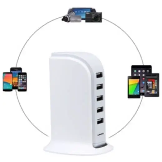 Laad tot wel 5 USB-apparaten tegelijkertijd op en bespaar zo kostbare tijd. Smartphones, tablets, powerbanks, digitale camera’s, navigatiesystemen: ze zijn allemaal geschikt voor deze multipoort USB-lader. U kunt de USB oplader met de bijgeleverde kabel gemakkelijk aansluiten op een stopcontact.