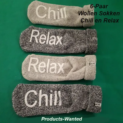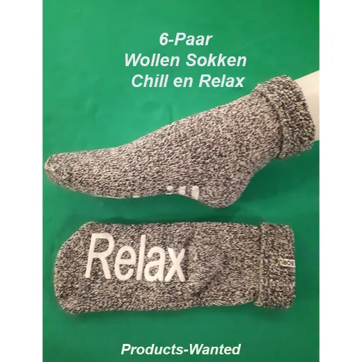 6-Paar Wollen Sokken Chill en Relax in 2 Kleuren, Maat 39-42, 6-pack bestaat uit 3x mélange licht grijs en 3x mélange donker grijs, Merk Boru