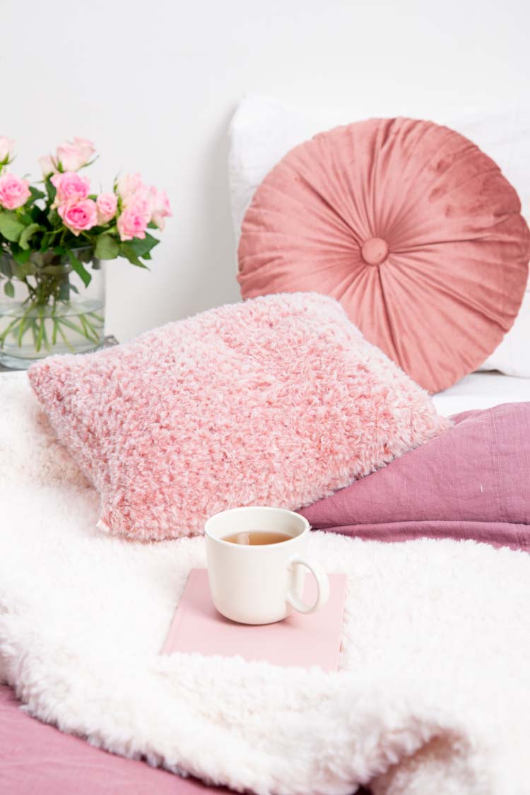 Lekker knus zitten met de warmste dingen die je maar kan haken, een heerlijk zacht fluffy kussen.