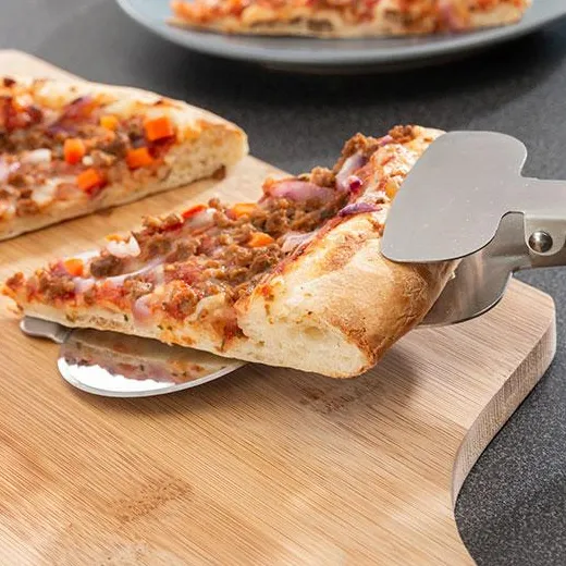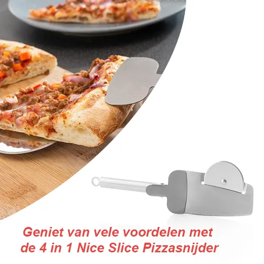Als u van pizza houdt, aarzel dan niet om te genieten van de voordelen van de nieuwe 4 in 1 Nice Slice pizzasnijder! Een originele en praktische pizzasnijder met een zeer innovatief en compleet ontwerp, aangezien het een snijmes heeft, gekartelde spatel aan de zijkant, schep voor het serveren van porties en een veiligheidshandvat.