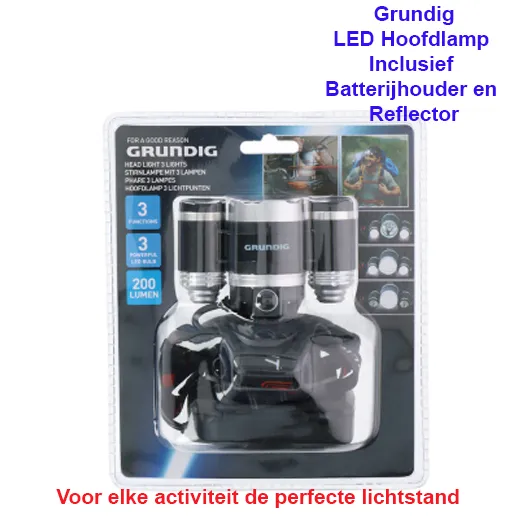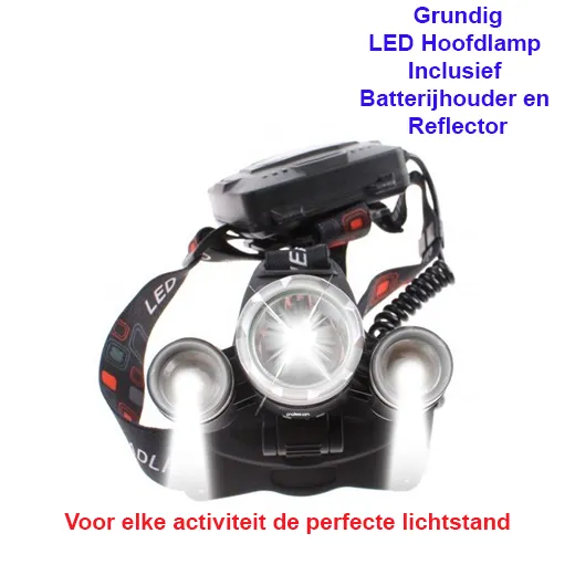 Een LED hoofdlamp met 3 LED lampen die zo extreem fel zijn dat het niet meer uitmaakt of het nacht of overdag is. Met deze kwalitatieve LED lamp met een lichtintensiteit van maar liefst 200 lumen zie je niets meer over het hoofd. De hoofdlamp is verstelbaar en is eenvoudig op te doen en comfortabel om te dragen. deze lamp spatwaterdicht zodat je niet bang hoeft te zijn dat een kleine en korte regenbui het licht zal doen uitgaan (pas op, niet geschikt voor langdurig gebruik in de regen of onderwater).De hoofdlamp is een superhandig hulpmiddel tijdens het klussen of op plaatsen waar je met een zaklamp lastig bij kan komen