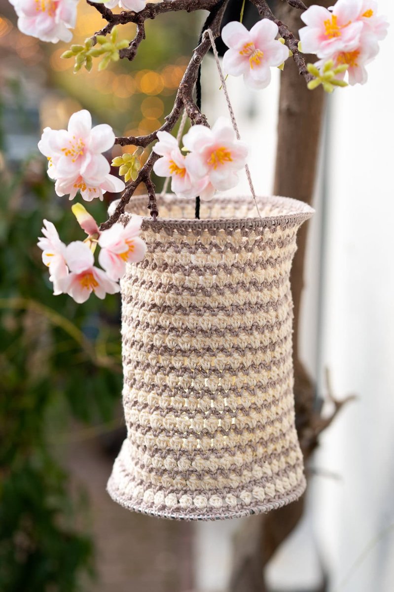 Haak een sfeervolle lampion voor je veranda of tuin. Gehaakt met 2 kleuren die mooi met elkaar combineren, er worden zelfs verschillende steken gebruikt. Dit ontwerp komt uit HobbyHandig 247 , haak nu zelf deze lampion!