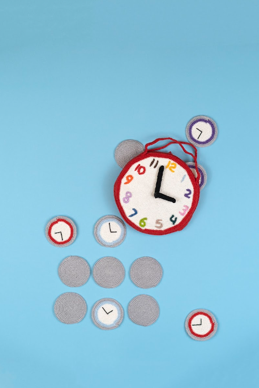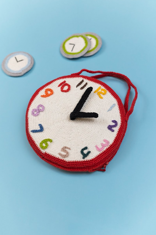 Dit is een superleuk memoryspel in de vorm van een klok en het is meteen een opbergtasje waarin je alles op kunt bergen. De wijzers van het tasje kunnen bewegen, zodat je kunt oefenen met klokkijken.