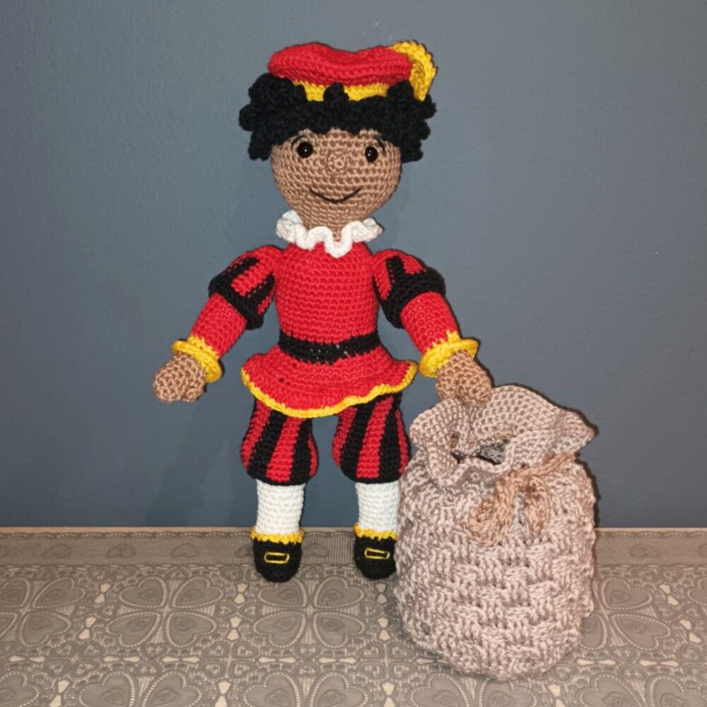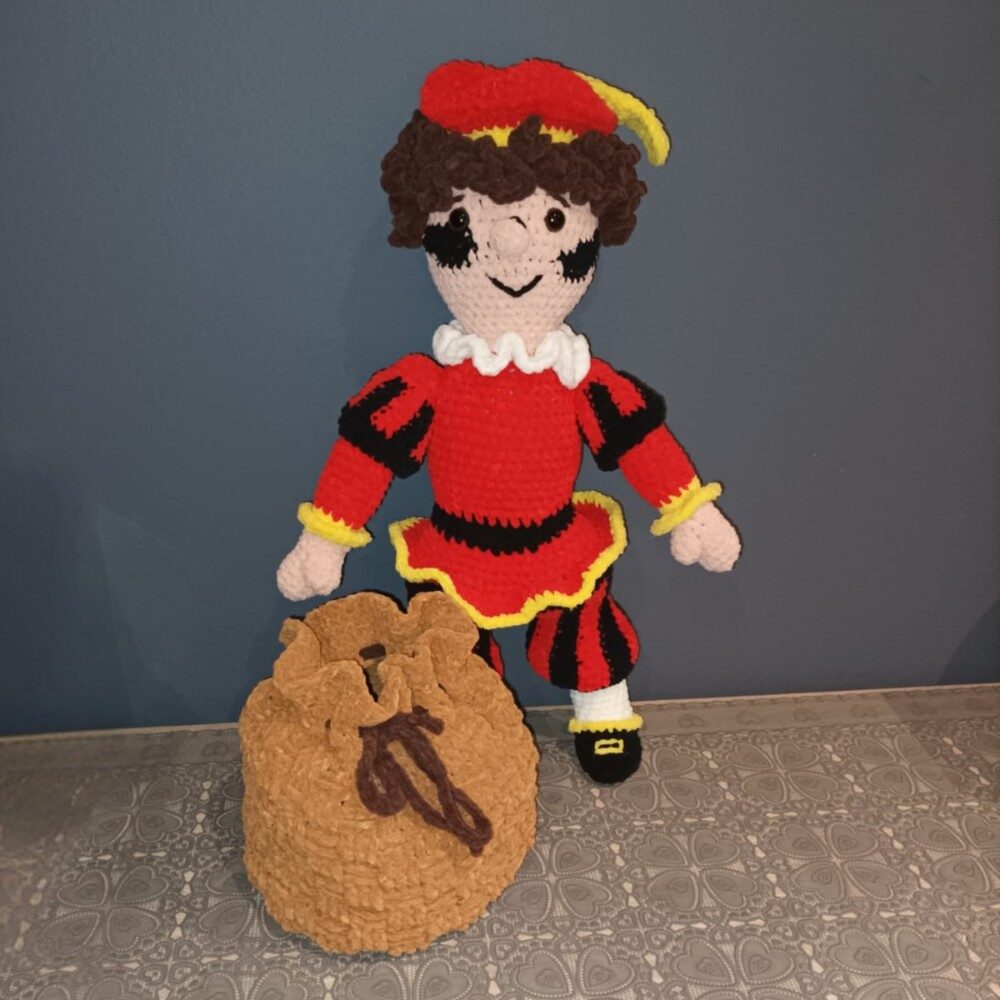Pjotter Piet kan je in twee verschillende versies haken, als roetpiet of gewoon in 1 huidskleur naar keuze. Gehaakt met Scheepjes Little Darling en Scheepjes Catona om het verschil in grootte aan te tonen. Afmetingen met Scheepjes Little Darling:Pjotter: ± 42 cm; Zak: ± 19 cm – Afmetingen met Scheepjes Catona:Pjotter ± 30 cm; Zak: ± 12 cm – Duidelijk beschreven haakpatroon van 13 pagina’s ondersteund met foto’s + extra pagina met leuke kleurplaat inbegrepen.