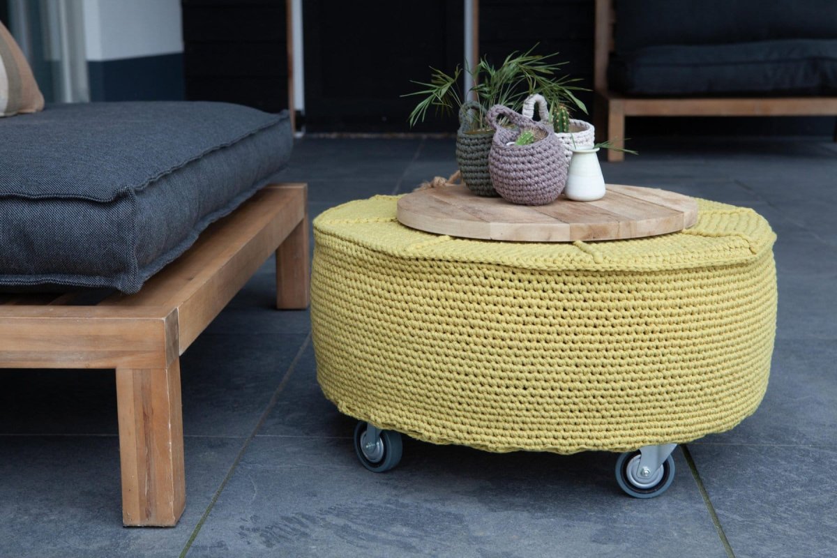 Je zou het zo niet zeggen, maar de basis van deze gave poef bestaat echt uit een autoband. Dit is pas duurzaam wonen en het is recycling op zijn best! Ook tijdens mooie zomeravonden kun je buiten van de poef genieten, bijvoorbeeld als bijzettafel.