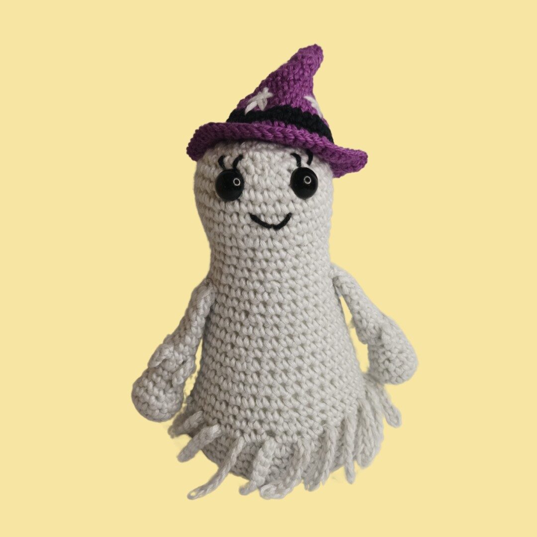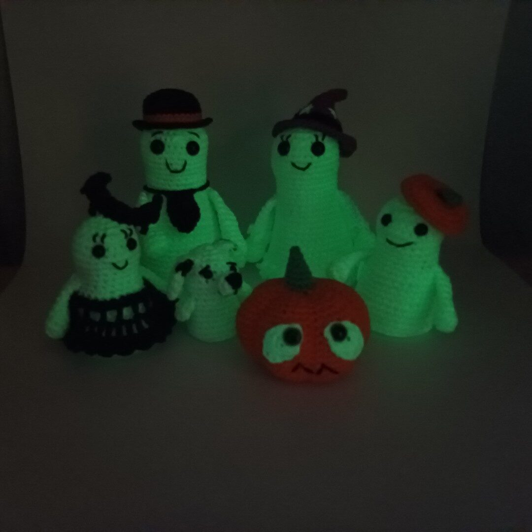Er is niets zo leuk als zelfgemaakte Halloweenversiering! Haak nu deze leuke spokenfamilie, de spoken lichten groen op in het donker met het prachtige Scheepjes Glow Up garen. Je kan deze uiteraard ook met gewoon garen haken, maar wat een leuk effect geeft het als de spookjes licht geven in het donker! En met Pelle Pompoen erbij is het helemaal compleet, deze pompoen heeft lichtgevende oogjes.