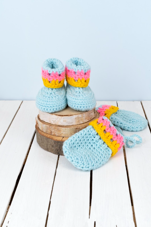 Het wordt winter, maar dat betekent niet dat de baby binnen blijft. Verras jonge ouders met dit superleuke kraamcadeau van schattige wantjes en slofjes waarmee de baby lekker warm blijft.