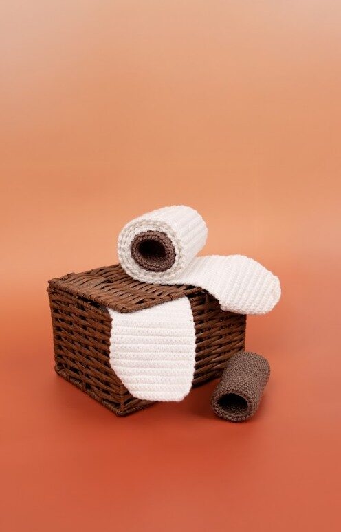 Als je boodschappen gaat doen bij de supermarkt, mag WC-papier niet ontbreken op het boodschappenlijstje. Zo ook niet bij onze Winkelserie XL! Haak meerdere rollen en doe het meteen in je winkelmandje. Haak de WC-rol en het papier 2 x zo breed en je hebt ook meteen een leuke keukenrol! Je kunt ook losse WC-papiertjes haken. Haak hiervoor T1-T21. Bevestig ze met klittenband op elkaar zodat je ze echt af kunt scheuren. Zo ontstaat er meteen leuke gastendoekjes!