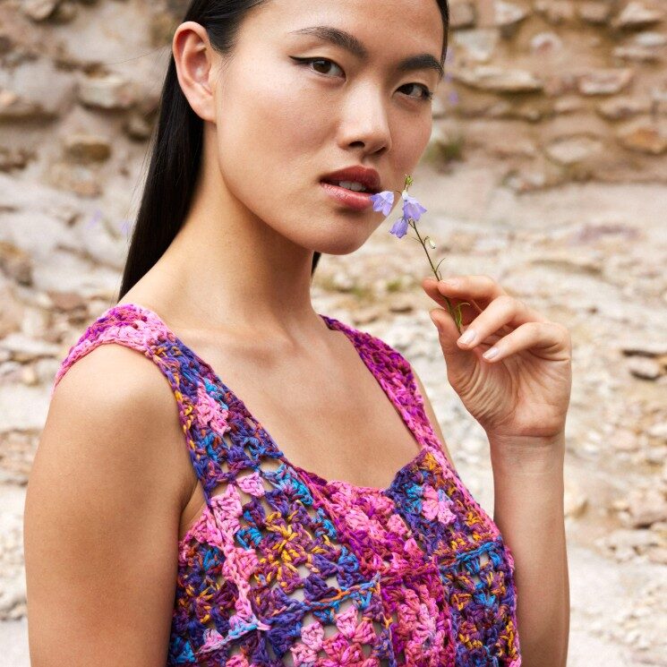 Dit luchtige topje straalt kleur en creativiteit uit. Dankzij het granny haakpatroon en de levendige kleuren is deze top ideaal voor zonnige dagen. Draag hem met een jeans of rok en creëer een speelse, zomerse look.