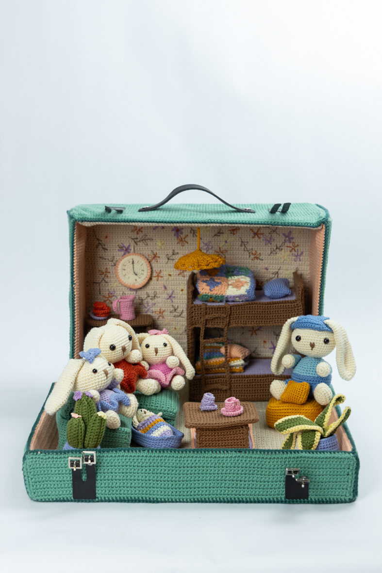 Heb je alle onderdelen van de speelkoffer al klaar en wacht je op de finishing touch? Dan kun je nu aan de slag met het laatste deel van deze serie: het vloerkleed, de poef, bank en tafel. Familie Konijn wacht er al op dat hun interieur compleet is en dan is het eindelijk: spelen maar!