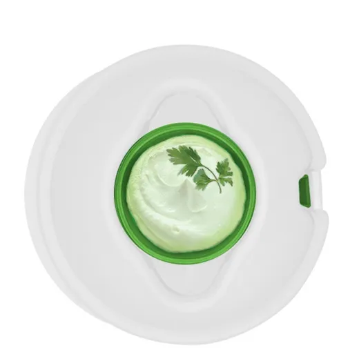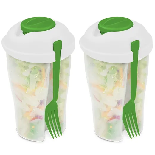 Houdt salades en fruit vers en knapperig. Tevens heeft het een ergonomisch design doosje om sausjes koud te houden. Deze deal bevat 2 bekertjes.