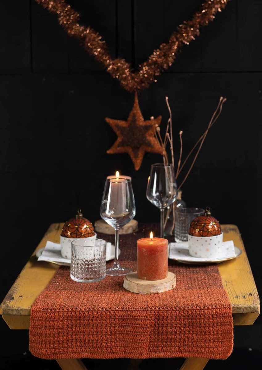 Hou je niet zo van uitbundige kleuren en versieringen, dan past deze mooie ster en de sierlijke tafelloper in natuurlijke aardetinten perfect in je interieur.
