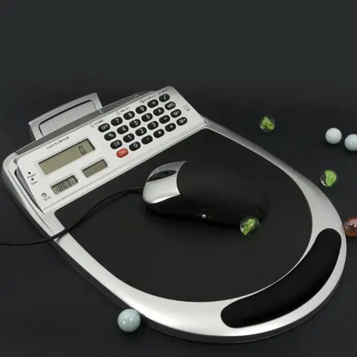 Een muismat is helemaal niet zo bijzonder, toch? Nou, dat was vroeger het geval. Dealrunner heeft namelijk met dit slimme ontwerp de ooit zo simpele muismat omgetoverd tot een onmisbare gadget voor bij je computer. Dankzij deze handige muismat heb je bijna altijd alles binnen handbereik op je bureau. Geen losse rondslingerende kabels en apparaten meer, maar een handige alles-in-1 oplossing verwerkt in deze muismat. De hub en kaartlezer zijn ideaal wanneer je snel een extern apparaat zoals een digitale camera, speaker, toetsenbord, etc. wilt aansluiten. Met deze muismat hoef je niet langer een vrije poort aan de achterzijde van de PC te zoeken. Ook de ingebouwde rekenmachine en thermometer zijn natuurlijk erg handig om altijd binnen handbereik te hebben. De muismat heeft tevens een ergonomisch design, waardoor je je pols er erg fijn op kunt laten rusten. Zo voorkom je lichamelijk ongemak!