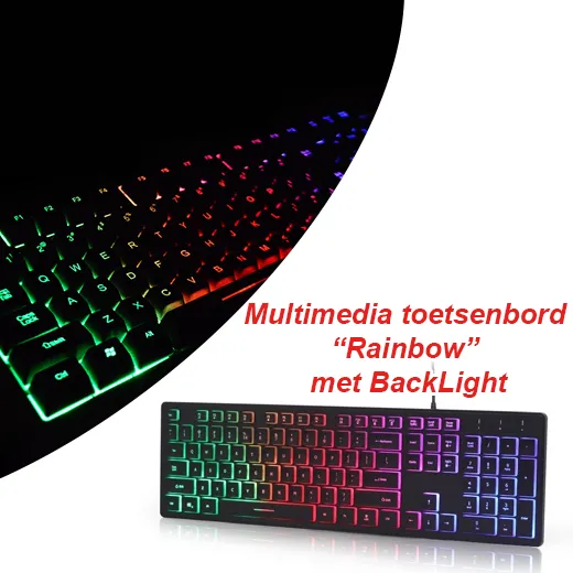 Een pot goud zal je aan het einde van deze regenboog niet vinden, maar het creëert wel een prachtig effect op je toetsenbord. Door de achtergrondverlichting kun je het toetsenbord ook eenvoudig gebruiken in een donkere omgeving.