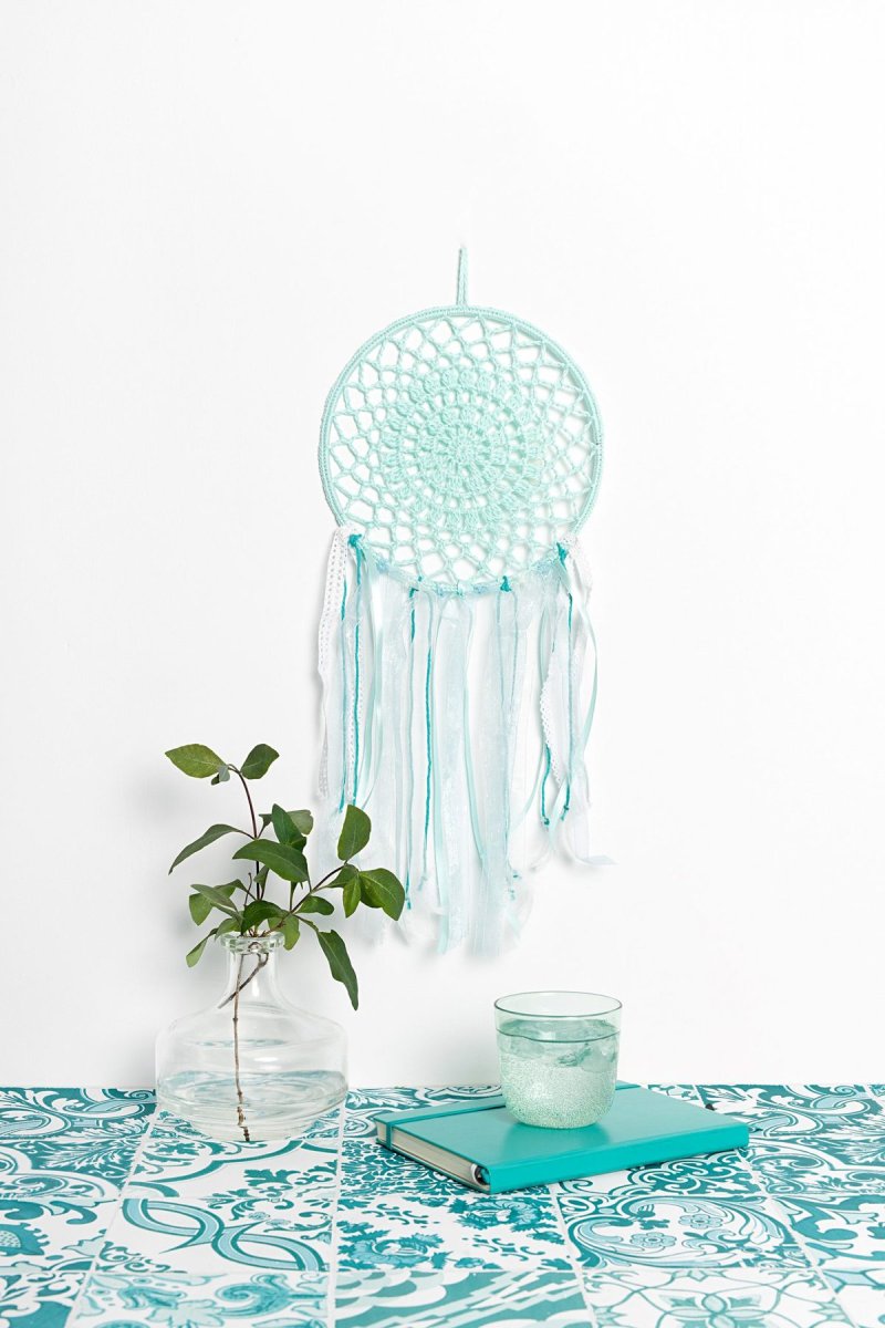 Vang al je dromen met deze romantische dromenvanger. Prachtig in een effen kleur of haak hem van restjes garen in meerdere kleuren.