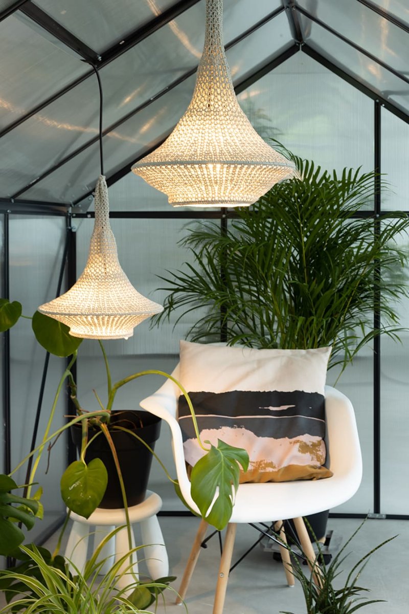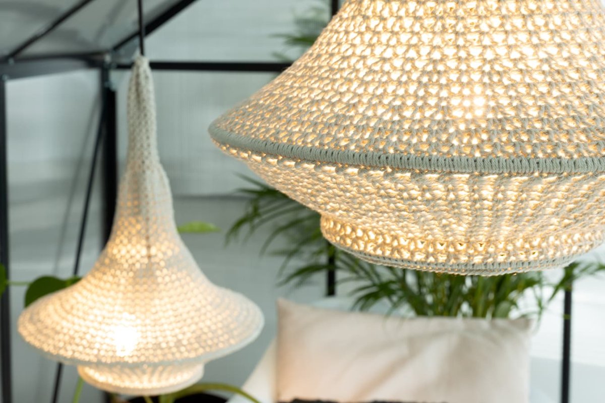 Zachte tinten maken van je woon- of buitenkamer een rustgevende plek en deze rustieke lamp draagt er een mooi steentje aan bij.