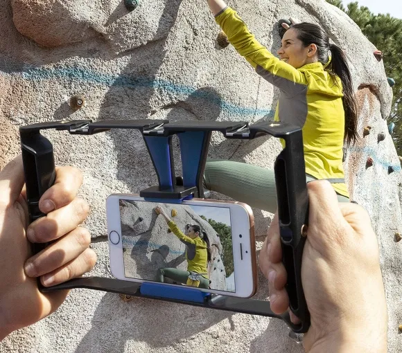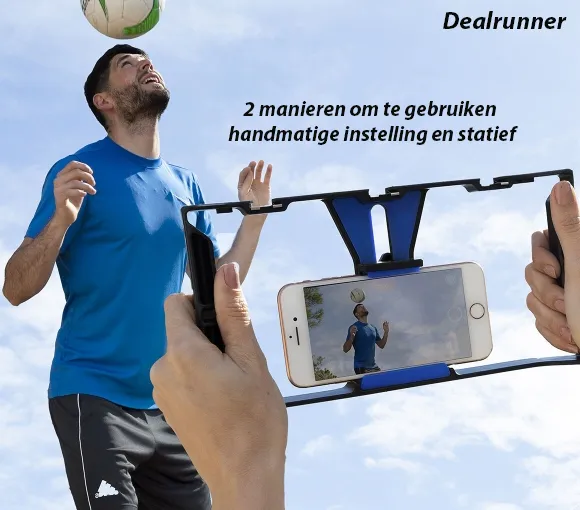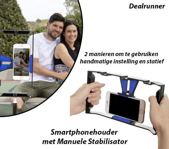 Een smartphonehouder met manuele stabilisator waarmee je foto’s en video’s van hoge kwaliteit kunt maken door het beeld te stabiliseren en zo een professioneel resultaat met optimale resolutie te bereiken. Door zijn verstelbare vormgeving is hij geschikt voor de meeste smartphones op de markt en biedt hij een stevige, veilige en stabiele houvast. Deze mobiele telefoonhouder met meerdere standen en vele mogelijkheden is zeer veelzijdig en aanpasbaar, want hij kan met de hand of op een statief gebruikt worden. Hij heeft verschillende gaten en gleuven om hem gemakkelijk in een statief te steken (horizontaal of verticaal) en om er andere accessoires (niet bijgeleverd) in te steken om het eindresultaat te helpen verbeteren, zoals een schijnwerper, een microfoon, etc. Voor handmatig gebruik heeft hij twee comfortabele handgrepen aan de zijkant om hem gemakkelijk met een of twee handen vast te houden en te bedienen, en hem steeds in de gewenste positie te plaatsen met totale bewegingsvrijheid. Bovendien is hij licht, draagbaar en gemakkelijk te vervoeren en op te bergen.