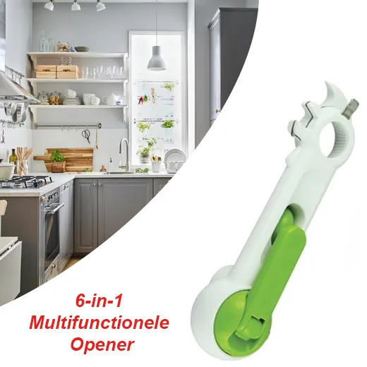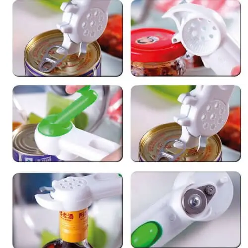 Niets kan weerstaan aan de Super 6-in-1 multifunctionele opener: potten, blikken, deksels, flessen… Alles in één! Je kan deze veelzijdige en effectieve blikopener gebruiken om deksels, lipjes, doppen, enz. veilig en makkelijk los te maken.