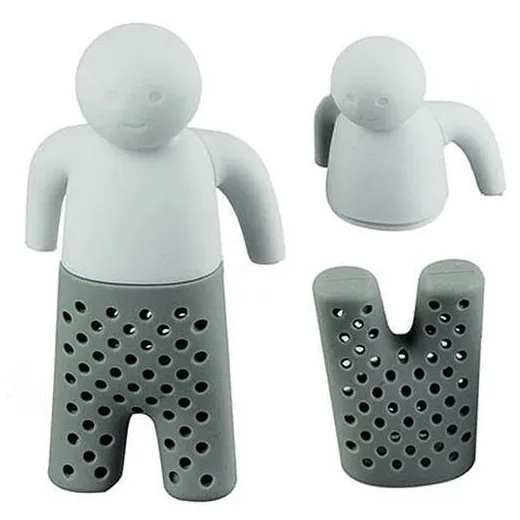 Met het theemannetje heeft u een leuk en ontspannen theemaatje! Het is een theefilter en zorgt voor een heerlijke kop van uw favoriete thee. De infuser is gemaakt van voedselveilig en smaakloos siliconen rubber. Trek om thee te maken schaamteloos de broek uit van het theemannetje en vul deze met uw favoriete thee. Doe zijn broek weer aan en hang het poppetje met zijn armpjes over de rand van een kop heet water. Hij is 5 x 3 cm dus past gemakkelijk in elk theeglas.