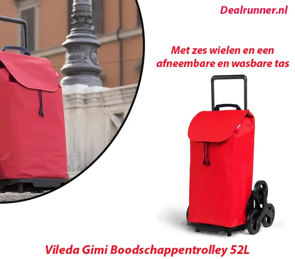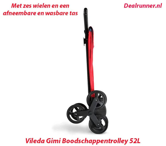 Deze Gimi rood-zwarte boodschappentrolley van Vileda is een ideale hulp bij een bezoek aan de winkel. Hij is gemakkelijk trappen op en af te tillen dankzij zijn 6 wielen. Te bevestigen aan een winkelwagen.