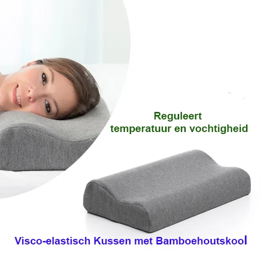 Relax visco-elastisch kussen met bamboehoutskool! Een zacht en comfortabel kussen gemaakt van innovatieve materialen. Het past zich perfect aan je lichaam aan en reguleert de temperatuur waardoor je makkelijk een correcte slaaphouding aanneemt en een weldoende nachtrust krijgt.