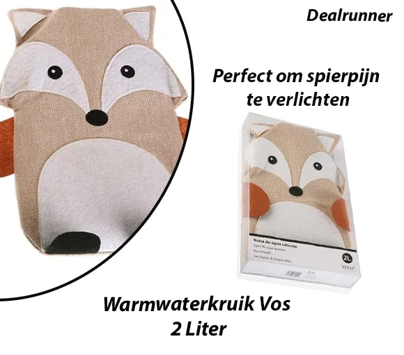 Schattige warmwaterkruik met vos design. Deze mooie en zachte warmwaterkruik kan gebruikt worden voor diverse doeleinden , voor maagpijn , rugklachten , voor beter slapen , aangenaam relaxen. De hoogwaardige warmwaterkruik met gebreide overtrek in vos motief heeft een elegante uitstraling en de afneembare overtrek in de kleuren licht bruin met ecru. De warmwaterkruik met een capaciteit van ca. 2 liter is gemaakt en getest onder hoge veiligheidsvoorschriften en heeft een uitzonderlijk lange levensduur.