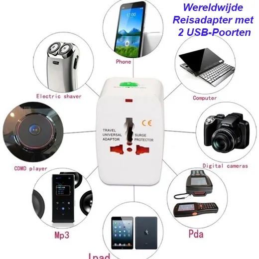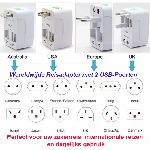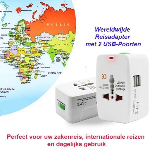 Wereldwijde Reisadapter met 2 USB-Poorten