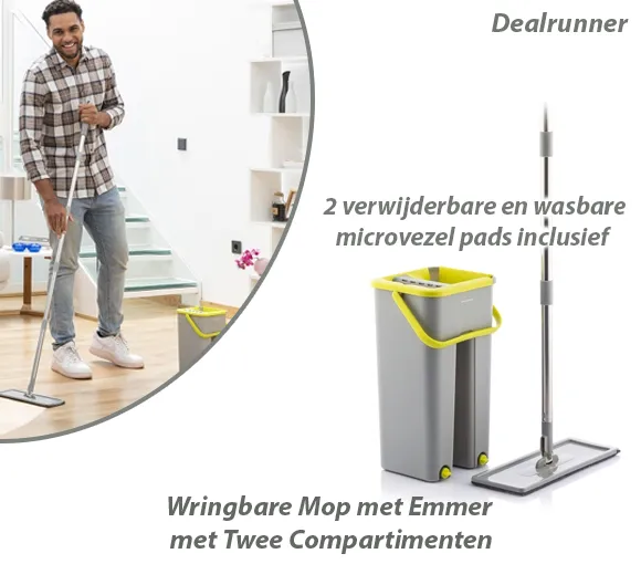Met de Klirimop InnovaGoods dubbelwerkende mop met emmer kunt u de vloer sneller en efficiënter schrobben, waardoor u met minimale inspanning een grondige reiniging krijgt. Bovendien bereikt hij gemakkelijk de moeilijkst bereikbare hoeken en plaatsen voor een volledige en grondige reiniging. Deze originele dubbelwerkende mop heeft een roterende kop en een emmer met 2 compartimenten (nat en uitwringen) om het schoonmaken te vergemakkelijken. Het extra lange handvat kan worden verwijderd voor eenvoudig opbergen